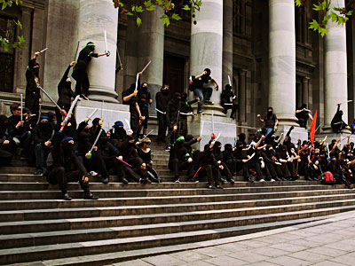 ventas callejeras, la viajera del futuro de Chaplin, tatuaje de pene en la espalda, muñeca come pelo, ninjas ayudan a joven solitario